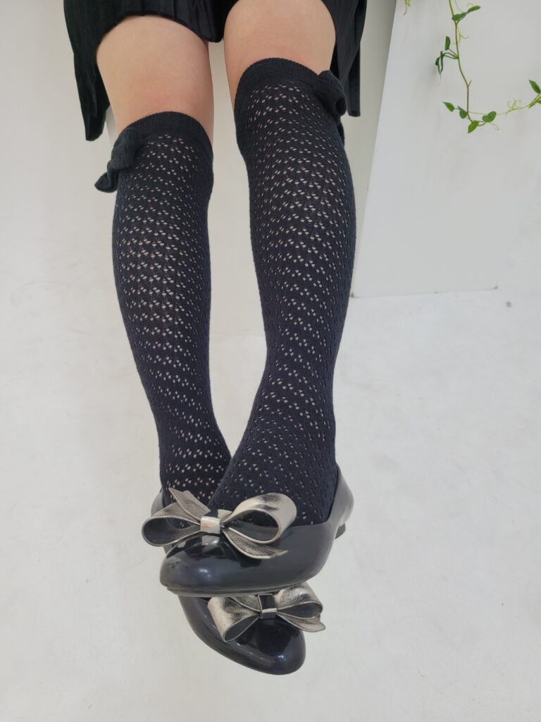 본 망사 스타킹 외에 하이니삭스 제품이 있는데요. 리본이 달려 있어 소녀스러운 느낌도 든답니다.